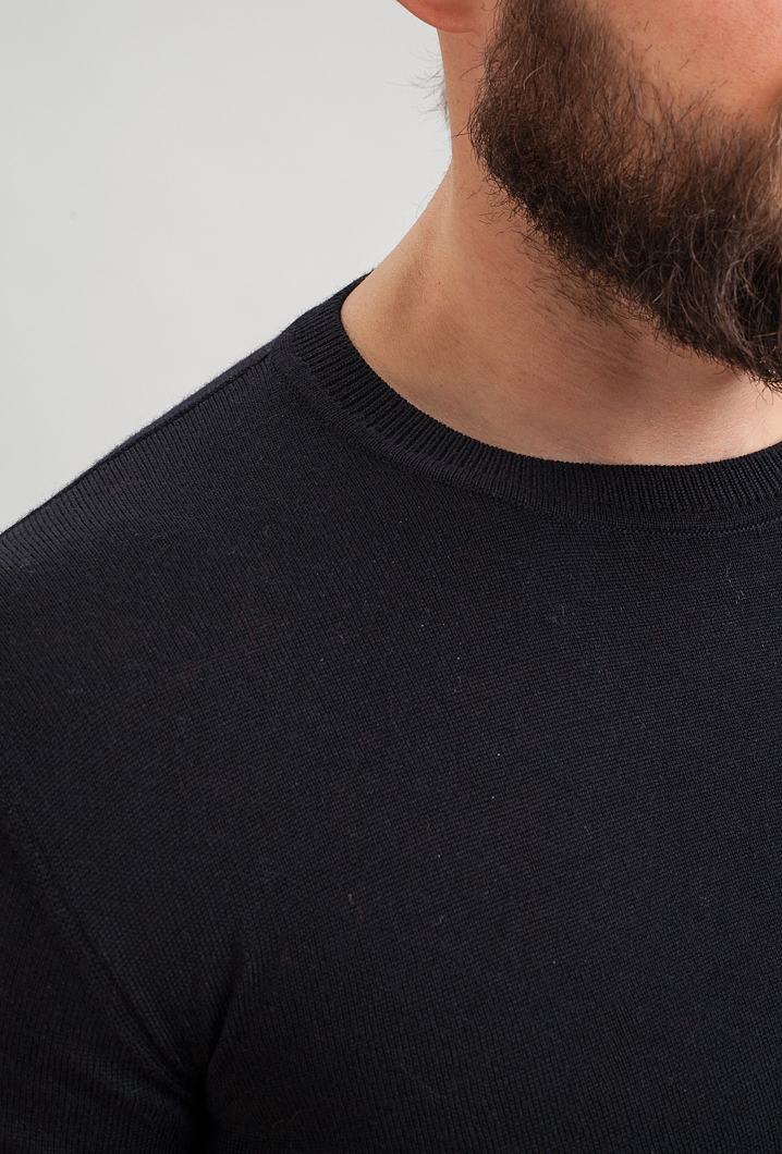 When meeting with friends, for a trip out of town or a walk, you can choose jeans and sneakers or boots with thick soles. A thin merino sweater will successfully fit into your basic wardrobe and will become simply indispensable for creating stylish and always comfortable looks. Stylish merino golf in a man's basic wardrobe, creates convenient and comfortable combinations under a blazer jacket or a classic jacket.