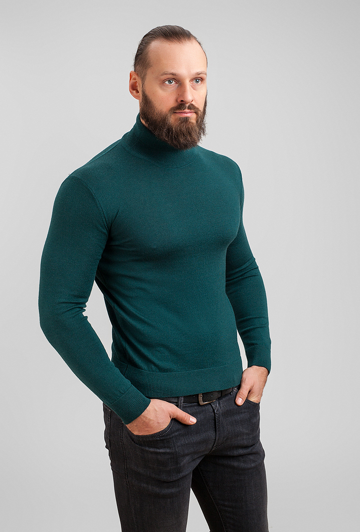 Viamaro Menswear tartleneck emerald green merino photo 1